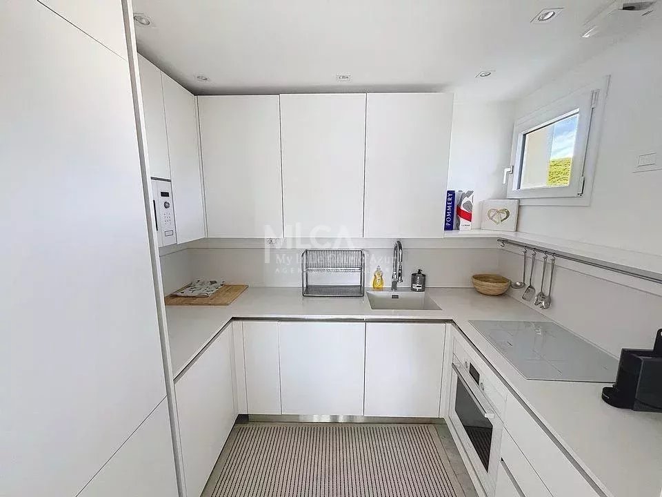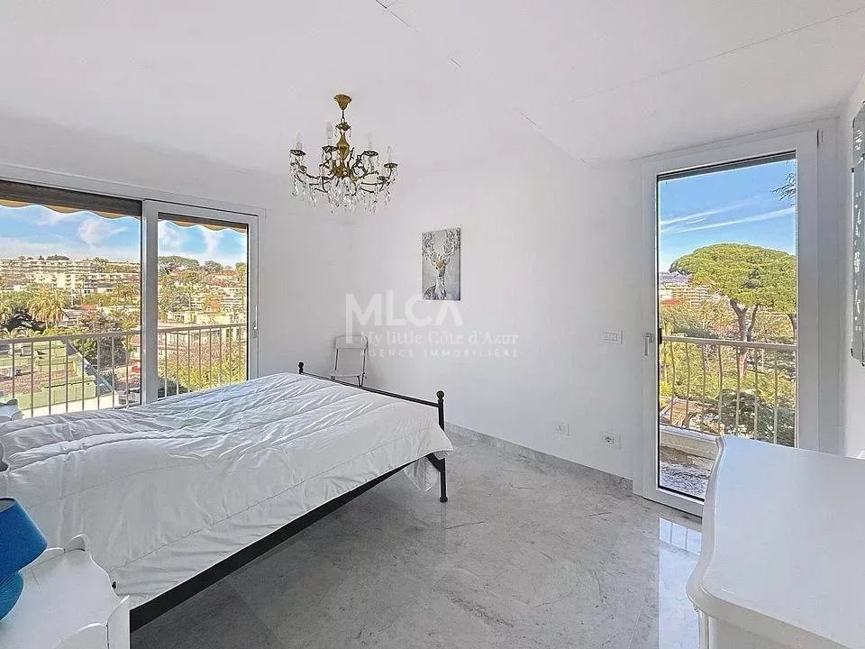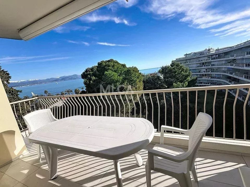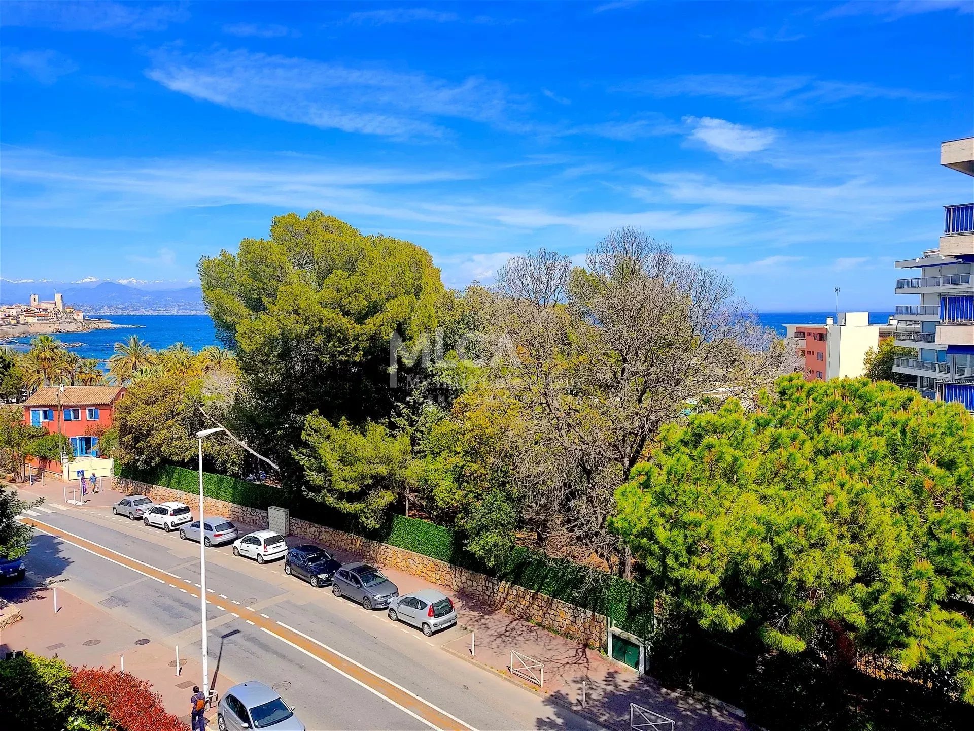 A louer pour vos vacances, dans une résidence avec gardien, appartement rénové en dernier étage bénéficiant d'une magnifique vue mer, montagnes et vieil Antibes, à proximité immédiate des plages du Ponteil et de la Salis et commerces.