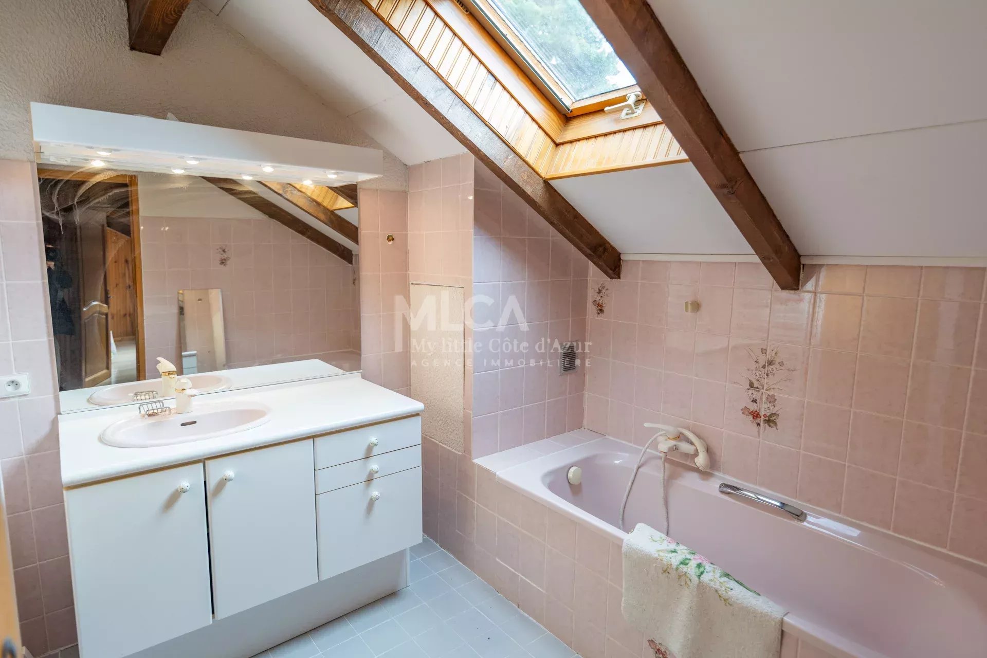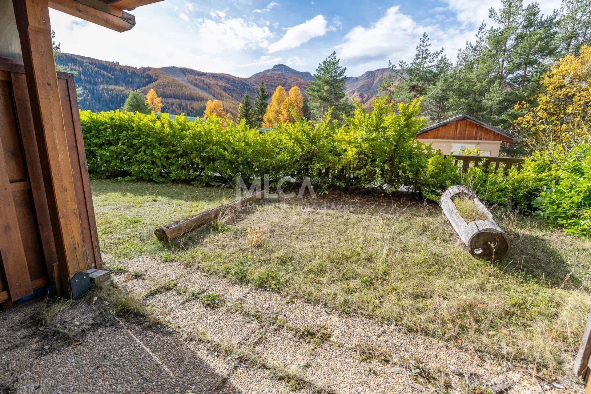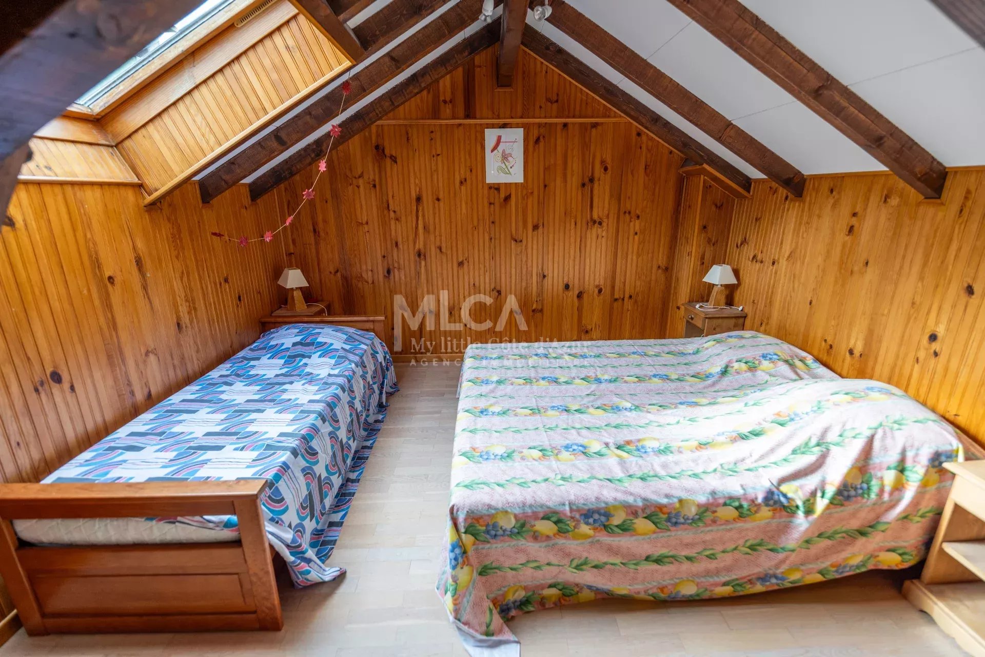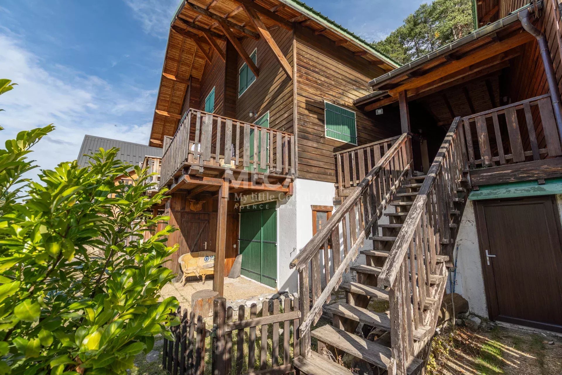 Chalet jumelé d'une superficie de 120 m2 environ situé chemin des Colettes. Ce petit chalet est édifié à partir d'un rez de jardin et élevé sur 3 niveaux.
